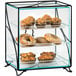 Its attractive, green acrylic exterior and sturdy wire frame will draw customers' attention to your delicious, freshly baked doughnuts, scones, tartlets, or dinner rolls. Three clear acrylic trays are included, allowing you to create multi-level serving and display platforms.