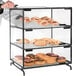 As fashionable as it is functional, this Cal-Mil PC300-13 three tier black pastry case is a smart solution for all of your bakery display needs! Featuring three tiers with three removable trays, you'll be able to display all of your muffins, Danish pastries, croissants, and other baked treats in one convenient case. The trays easily slide out of the case so you can refill them and keep selling more! This pastry display case features a black, 3/8" solid steel bar frame that suits any setting. From bakeries to buffets and catered events, its clear acrylic material provides excellent product visibility so your guests can clearly view your offerings from all sides. This case features front and back loading doors, which makes it easily accessible for your staff and your guests in both self-serve and full service locations! The case includes 3 clear trays for displaying your most popular offerings.