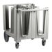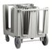This Cambro ADCS480 adjustable dish caddy offers superior mobility, with ergonomic, molded-in handles on both ends, as well as two 10" non-marking Easy Wheels, and two 5" front swivel casters with brakes. Its extremely durable, heavy duty polyethylene construction protects china from chipping during storage. Includes vinyl cover for sanitary storage.