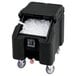 Transport and store up to 100 lb. of ice for days with the Cambro ICS100L4S110 SlidingLid™ black mobile ice bin! A unique sliding lid provides easy access while it also reduces the risk of cross contamination. A recessed well and drain shelf keep the ice out of the water, extending holding times.