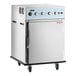 Featuring a stainless steel interior and exterior, this unit is fully insulated and accommodates (4) 18" x 26" sheet pans on wire shelves, or (8) 12" x 20" food pans on slides. Simple and reliable controls with a clear and easy-to-use digital readout allow you to cook at temperatures between 150-325 degrees Fahrenheit and hold between 60-205 degrees Fahrenheit, while a convenient timer can be set for up to 12 hours. For greater mobility throughout your kitchen, or to on-site catered events, 6" casters are included with this unit. A 208/240V electrical connection is required for operation.