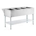 Have had this steam table 1 year and every thermostat control knob has failed as well as a heating element and some indicator lights. During those failures Webstaurantstore sent us replacement parts and we had them installed. Now on this last failure. I'm sent to a third party to try to submit a warranty claim. Do not buy this table, you will regret it. previous to this last failure Webstaurantstore did a great job, not this time.