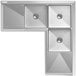 Made of durable 18 gauge, 304 type stainless steel, the sink is sure to withstand constant use in a bustling commercial environment. The metal won't rust or corrode, nor will the galvanized steel legs, sockets, or bullet feet. For added structural strength, the legs include H-shape cross braces; these ensure that all parts of the corner unit are properly supported at all times.