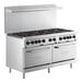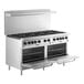 Improve your kitchens performance with the MainStreet Equipment E60-N natural gas 10 burner 60" range with 2 standard ovens! With (10) 30,000 BTU open top burners, this natural gas range ensures you can sauté, boil, and simmer your dishes to perfection. The 12" x 12" rugged cast iron grates are built to support heavy stock pots along with saucepans, fry pans, and other cookware as you slide them from burner to burner. Plus, the burners have independent controls for simultaneous use to boost your cooktop efficiency. This unit also boasts a 2" front ledge as extra workspace and combines with a 9 3/4" deep back shelf to hold essential seasonings and supplies for convenient access.