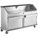 Thanks to its all-welded type 304 stainless steel construction, this portable bar does not retain odors from spills and is easy to wipe clean and sanitize. Four 6" rubber casters enable you to effortlessly reposition your bar for new events or thorough floor cleaning. When ready to lock the bar into position, flip down the two casters with brakes. Plus, the full perimeter bumpers offer superior protection for your walls and furniture during transportation. The large bottom lockable cabinets are perfect for keeping your prep tools, ingredients, mixes, garnishes, ice, and glasses. It's also a private place to store staff's personal possessions or money boxes. This portable bar will make beverage service in your banquet hall, hotel lobby, outdoor wedding reception, or poolside terrace a breeze!