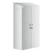 The cabinet features a fully welded design to ensure long-lasting use, while the open back and ventilation slits built into the sides promote proper airflow. The interior of the cabinet also helps to keep you organized with a mop holder for each side and 4 stainless steel storage shelves for keeping all of your gloves, cleaning products, and other commonly used supplies close at hand. The doors feature a recessed handle, and two lock and key sets are included to keep the cabinet's contents secure when not being used. The sides, 15-degree angled top, and storage shelves are all made from 18 gauge type 304 stainless steel, while the bottom and doors use type 430 stainless steel (22 gauge on the doors, 18 gauge on the bottom).