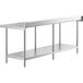 This table is okay. Sturdy feel on the top. Looks nice once you clean it and the black residue is removed. Undershelf is bendy. Maybe it holds as much as the rating. It can flex with a light press when cleaning, wiping, etc. Should have had a brace in the middle, cross brace, something for more rigidity. The undershelf doesn't feel strong. Would have preferred some sort of insert spot for the retaining screws. Screws just press into the stainless steel legs. No simple 1" adjustment locations to lock in place. Leveling the undershelf is difficult with one person. Leg design makes little sense to me where feet connect. Feet have plastic insert pieces. Receiving holes in poles just smooth metal. No threads, nothing to grab and lock attachments like rollers and the like. Just push in and feet stay put. If you want to go with the Regency metal feet Read More