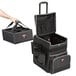 Make cleaning a breeze at your hotel, resort, fine dining establishment, or other facility with this 1902466 Executive quick cart. Designed with a Teflon® fabric protector coating, this sturdy cart's outer shell is designed to repel water, oil, and stains. The high-performance material provides strength and rigidity that guarantees the ability to withstand long-term heavy use, while the black fabric and subtle design allow this cart to easily blend into upscale environments without the bold aesthetics of a regular janitorial cart. A durable aluminum telescoping handle combines with a compact design to provide comfortable navigation through tight spaces, and robust ball-bearing wheels ensure a quiet and dependable ride.