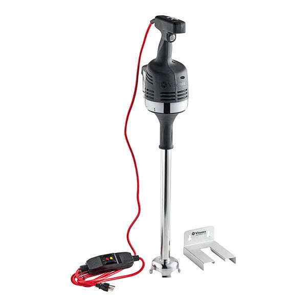 Designed for convenience and safety, this immersion blender offers continuous run operation for high-volume blending, making it perfect for busy commercial kitchens. It can even work hands-free when paired with the optional pot clip (sold separately). The shaft is dishwasher safe for hassle-free cleaning, while the ergonomic handle ensures efficient and comfortable use. The 12' cord provides flexible mobility, while the GFCI plug and red color cord enhance safety measures in your kitchen. Despite its light weight, this immersion blender is heavy-duty in performance, making it a reliable tool for your blending needs. A wall mount is included with this unit, allowing for convenient storage when not in use. Upgrade your blending experience with the Vitamix Immersi-Prep immersion blender! This unit requires a 120V connection to operate.