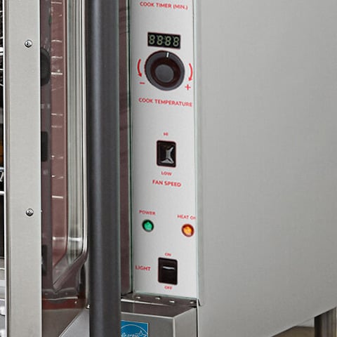 This oven features high-efficiency heating elements and an electronic thermostat for accurate temperatures and precise cooking. It boasts a temperature range of 150 to 500 degrees Fahrenheit and is powered by an 11 kW heater and built-in convection fans. This makes the oven great for countless menus and food service operations.