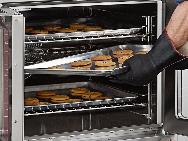 Two independent glass doors (per oven) feature Bakelite handles to provide comfortable heat resistance and visibility while closed. This gives you the ability to check on dishes without releasing hot air and reducing the chamber temperature.