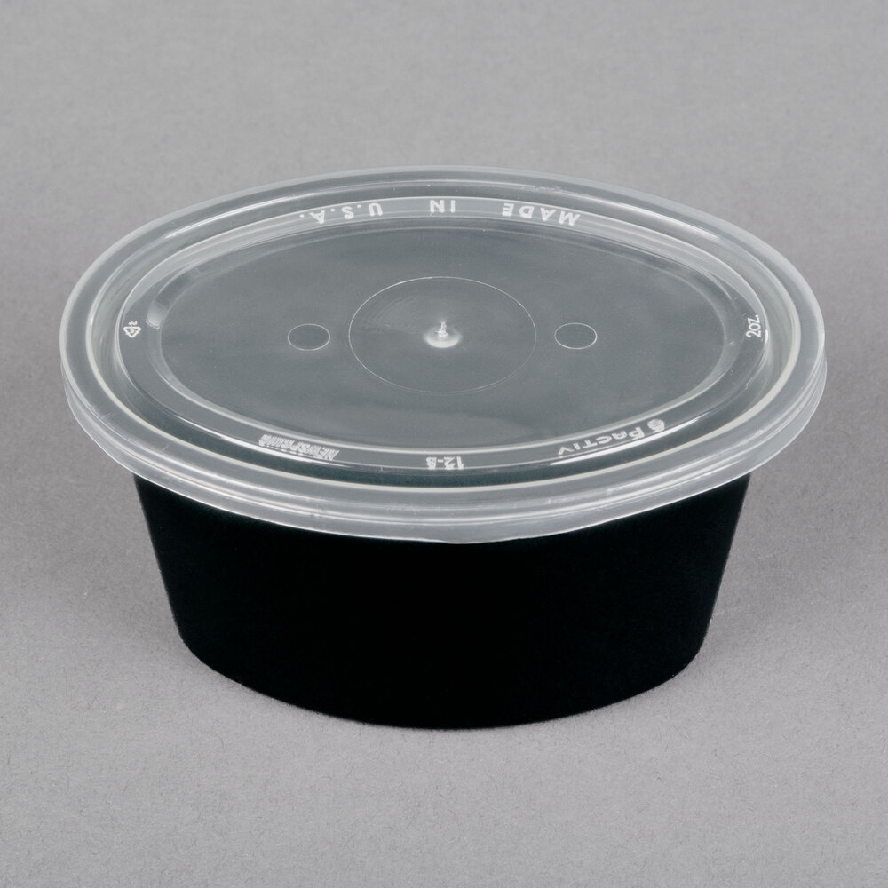 The lid's unique oval design allows you to create an upscale presentation in a convenient, disposable container. Patrons will also appreciate the oval shape when snacking on chicken tenders and other wide foods that may not fit cleanly into a round container for dipping.
