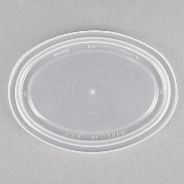 This ELLIPSO souffle / portion cup lid is the perfect companion to compatible 2 oz. containers! It breaks away from conventional round lids in favor of a wide oval shape to help you easily create a distinct aesthetic. Featuring a clear construction with a reliable tight-fitting design, this lid allows quick product identification and is an excellent choice for virtually any to-go application.