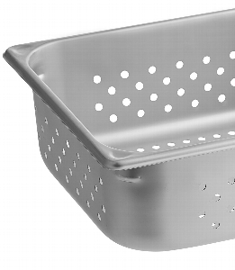 Due to its perforated bottom and sides, this item permits fluids to drain away from your food, reducing the risk of cross-contamination caused by unnecessary handling. This stylish and efficient pan features round, tapered corners for easy scooping and pouring of foods or liquids.