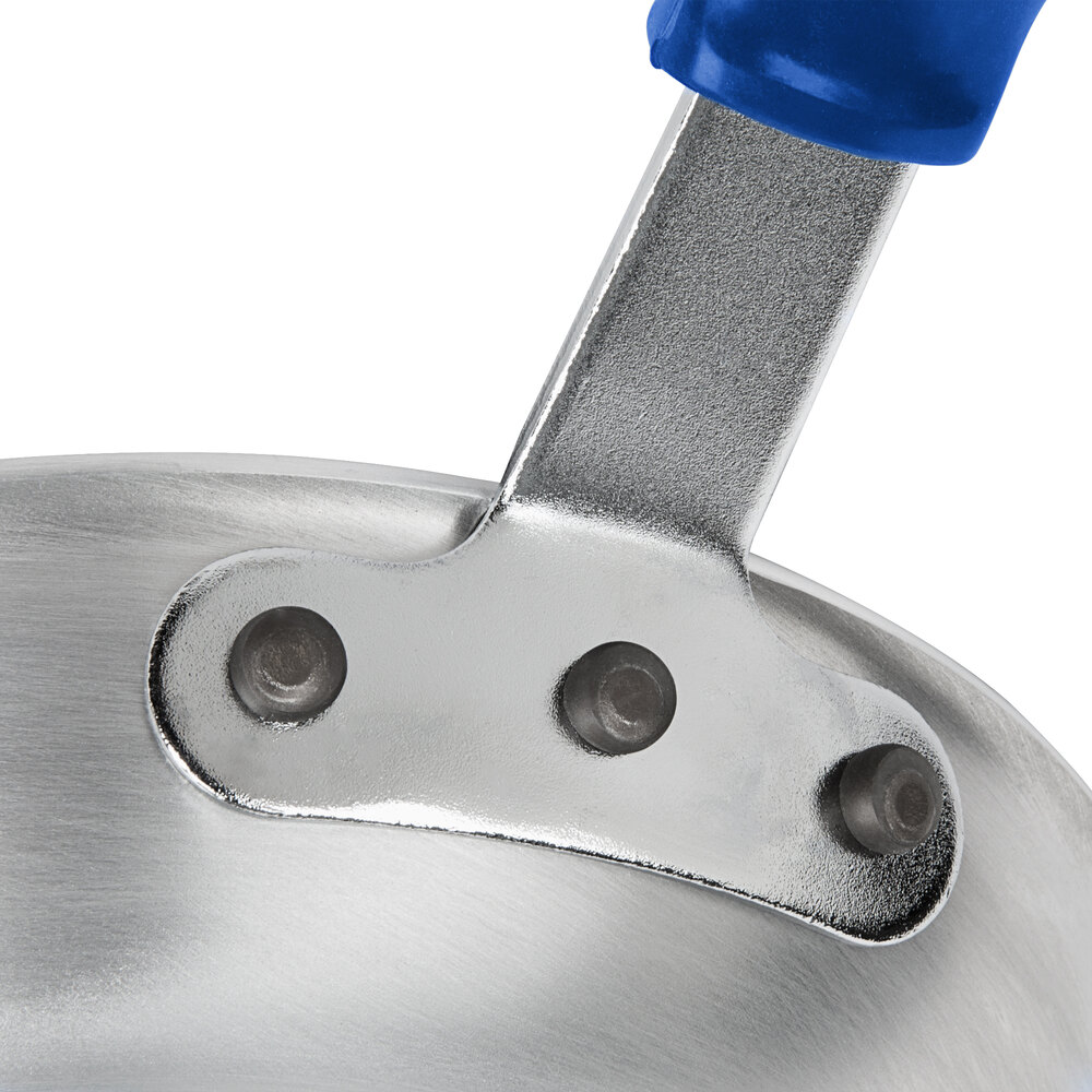 For a handle to be welded, the metal must first be melted and then adhered to the pan body. This creates a strong bond that leaves little to no space in between, so bacteria and other food crumbs can’t collect and cause sanitation issues. Both are long lasting solutions for fry and sauce pan handles because they are durable and can withstand heat.