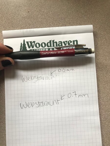 These mechanical pencils have a .5mm lead which is thinner than I'm used to. They write well however the lead tended to fall out at times. This only happened with one of the two pencils so it could've been a minor defect!