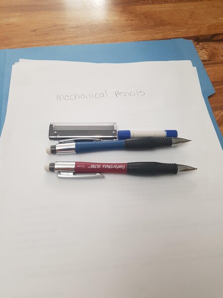 The Paper Mate Comfortmate 0.5mm Mechanical pencils are great for having a fine point with the 0.5mm lead while writing. It also works on most Scantron tests and forms as it has a #2 lead.