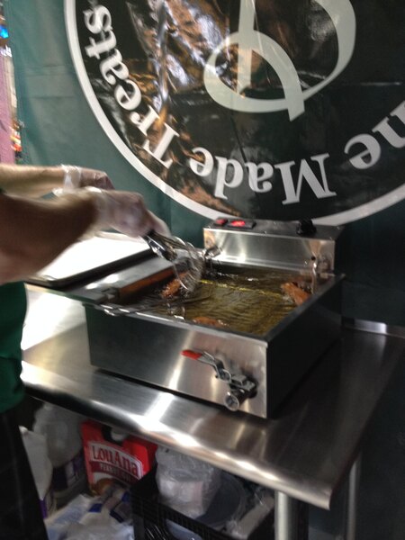 The unit is portable and takes up less than 2 feet of your counter space, which allows you flexibility when setting up the prep area. The fryer's pot has a capacity of three 6” or two 8” funnel cakes at a time.