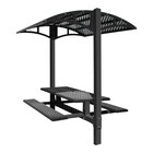 Bring style and shade to your outdoor gathering area with this Paris Site Furnishings Shade Series 6' wine red surface mounted picnic table with canopy and Moroccan perforations. This picnic table is designed to provide convenient outdoor dining space, while its canopy offers protection from direct sunlight and rain. It features dual posts for enhanced stability. Plus, its surface mounted design allows for a simple and versatile installation process at your park or bus stop. With an approximate 6' wide sitting area, this Shade Series picnic table will accommodate people of all ages and sizes.