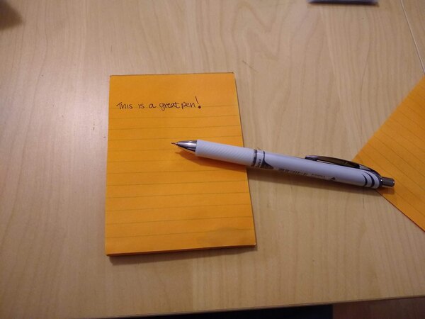 Great quality pen with a sleek design. Fast drying ink for smooth writing and less smears and smudges. Comfortable and sleek design. Professional look that is great for businesses.