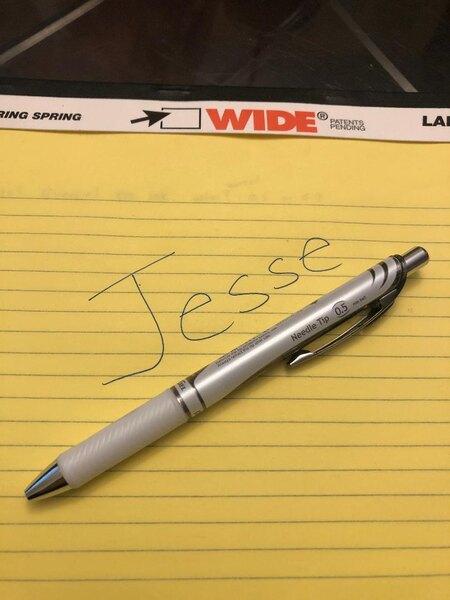 The Pentel BLN75PWA EnerGel Black Ink Retractable Liquid Gel Pen with a white barrel is very comfortable in your hand! Additionally, you can by the ink refills very reasonably priced from webstaurant....great deal!