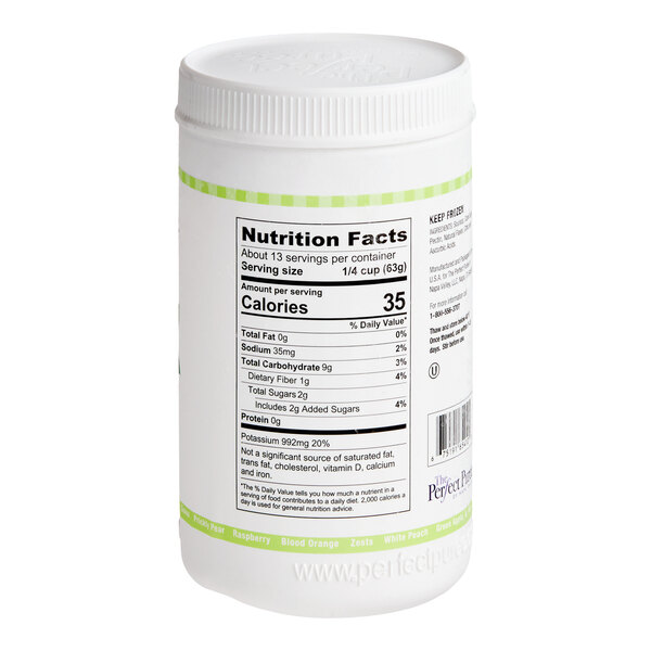 Packaged in a convenient yet durable wide mouth HDPE jar, this puree is stackable in nature to provide the utmost organization. With a uniquely colored ribbon and bold image on the front of the jar depicting the fruit, each flavor is easily recognizable for quick identification in the refrigerator or freezer. Plus, the threaded, twist-on lid provides peace of mind that that container is tightly closed to eliminate spills and messes. The puree itself is easy to scoop and portion, and it can also be thawed and refrigerated at 40 degrees Fahrenheit. With this puree, the possibilities are endless, so let your creativity shine with this item from Perfect Puree!