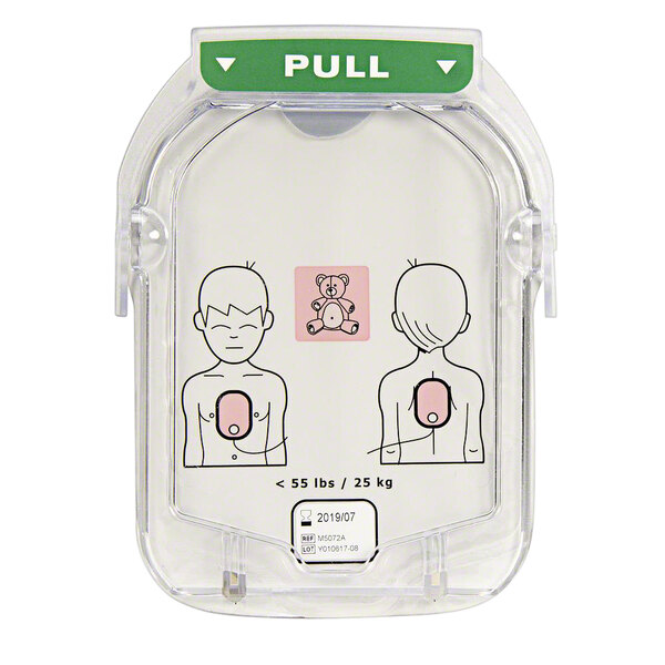 This Philips M5072A infant / child electrode pad cartridge is a perfect companion for HeartStart OnSite AEDs. The child electrode pads are used to deliver a potentially life-saving shock to a patient, so it is important that you always keep them stored properly, and that you keep a spare set onhand in case you need to use your AED and replace with a new set of pads. These electrodes come with clear diagrams that show you where to place each pad, and they come in an easy to replace cartridge format with a clear plastic cover and a built-in "pull" handle to retrieve them from the AED. The pads should be replaced every 2 years, or after each AED use. They are intended for use on patients under 8 years old, or 55 lbs.