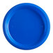 Thanks to its vibrant, blue color, this plate creates the perfect backdrop for colorful foods, ensuring a striking appearance. Its embossed rim also adds a touch of elegance to your service, while its classic, round shape lends a traditional look to your table settings.