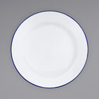 Crow Canyon Home V95BLU Vintage 12" White Wide Rim Enamelware Plate with Blue Rolled Rim