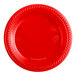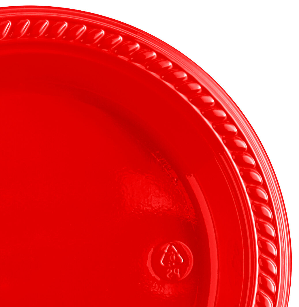 Thanks to its vibrant, red color, this plate creates the perfect backdrop for colorful foods, ensuring a striking appearance. Its embossed rim also adds a touch of elegance to your service, while its classic, round shape lends a traditional look to your table settings.