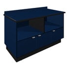 Coming with two 21 5/8" x 19 3/4" x 16" microwave openings, this cabinet can hold two microwaves. The 4" backsplash helps prevent supplies and ingredients from slipping off of the counter. The nickel door pulls make opening the doors easy, and the doors conceal a single shelf per compartment for extra storage space. PVC edge trim lines the cabinet and door edges to prevent damage. The metal base is sturdy and durable, and the included leveling glides provide extra stability. Plus, it includes three cabinets for more storage space at the bottom.