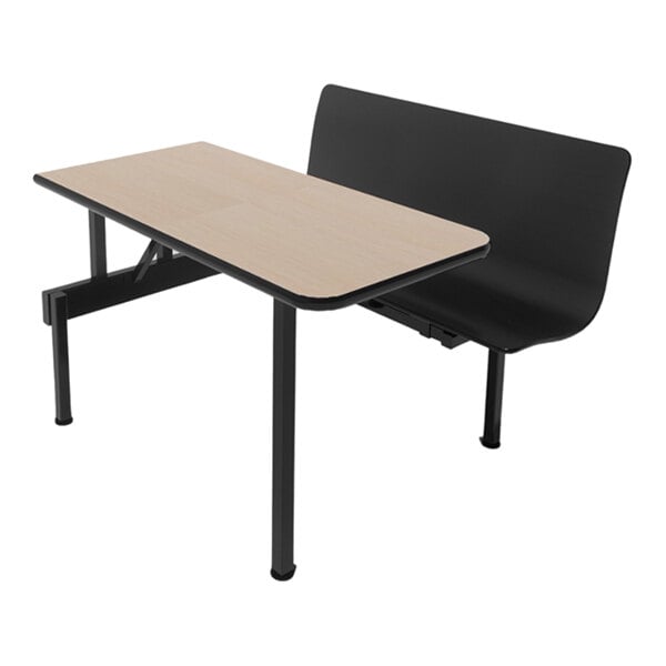 Upgrade your establishment with this Plymold Contour 24" x 47" ADA beigewood laminate table top with 1 black bench. The open side of the unit makes it ADA complaint in order to accommodate your guests and provide easy access to the table. This unit is ideal for restaurants, cafeterias, and breakrooms. It boasts an attractive beigewood table top and an onyx black powder-coated steel frame. Featuring a 24" x 47" high pressure commercial laminate table top with vinyl T-mold edges, this unit is sure to withstand the demands of your establishment. The 3" radius corners have a rounded design that helps ease the sharpness of the edges.