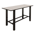 Provide your guests with a reliable workspace with this Plymold Hero 72" x 30" planked urban oak laminate bar height table. This table creates more space in your coffee shop, quick service restaurant, conference room, or lounge while maintaining a thin profile. Additionally, this table boasts a planked urban oak color and onyx black powder-coated steel frame. As part of the Hero line, the frame features an attractive, functional H-shape for extra durability.