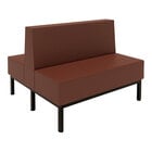 Upgrade your establishment with this Plymold Mesa 48" long double booth. Featuring a comfortable, 8 3/4" thick American beauty red vinyl cushioning, this booth is sure to add a modern touch to your decor. It is strengthened by a reliable 1 1/2" 16 gauge steel frame with an onyx black powder-coated finish so that it can withstand the demands of your establishment.