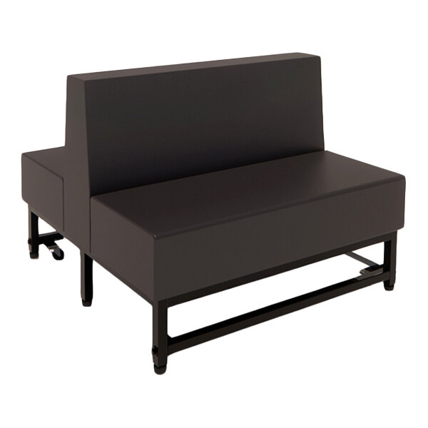Upgrade your establishment with this Plymold Mesa 48" long rolling double booth. Featuring a comfortable, 8 3/4" thick black vinyl cushioning, this booth is sure to add a modern touch to your decor. It is strengthened by a reliable 1 1/2" 16 gauge steel frame with an onyx black powder-coated finish so that it can withstand the demands of your establishment. Additionally, this booth has retractable wheels that provide easy mobility, making it easier than ever to move the booth exactly where you need it. Take advantage of the discreetly accessible foot pedal access to engage the wheels!
