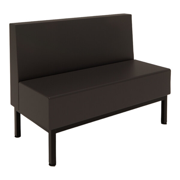 Upgrade your establishment with this Plymold Mesa 48" long single booth. Featuring a comfortable, 8 3/4" thick black vinyl cushioning, this booth is sure to add a modern touch to your decor. It is strengthened by a reliable 1 1/2" 16 gauge steel frame with an onyx black powder-coated finish so that it can withstand the demands of your establishment.