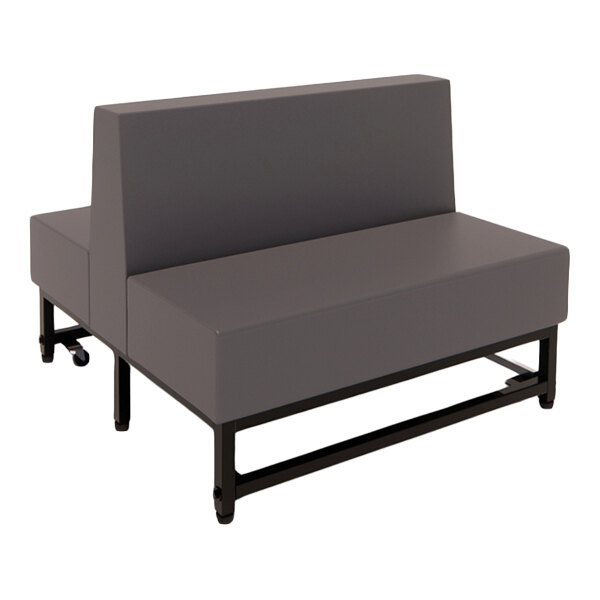 Upgrade your establishment with this Plymold Mesa 48" long rolling double booth. Featuring a comfortable, 8 3/4" thick cadet gray vinyl cushioning, this booth is sure to add a modern touch to your decor. It is strengthened by a reliable 1 1/2" 16 gauge steel frame with an onyx black powder-coated finish so that it can withstand the demands of your establishment. Additionally, this booth has retractable wheels that provide easy mobility, making it easier than ever to move the booth exactly where you need it. Take advantage of the discreetly accessible foot pedal access to engage the wheels!
