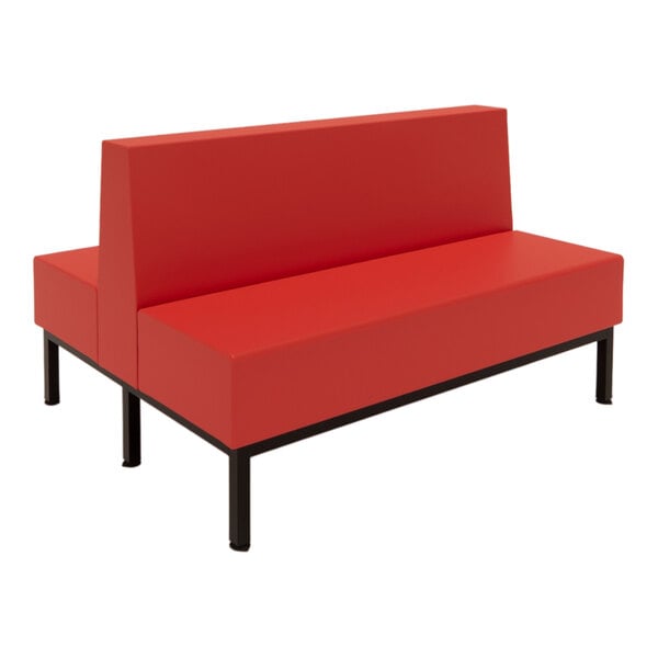 Upgrade your establishment with this Plymold Mesa 60" long double booth. Featuring a comfortable, 8 3/4" thick American beauty red vinyl cushioning, this booth is sure to add a modern touch to your decor. It is strengthened by a reliable 1 1/2" 16 gauge steel frame with an onyx black powder-coated finish so that it can withstand the demands of your establishment.
