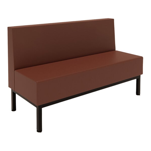 Upgrade your establishment with this Plymold Mesa 60" long single booth. Featuring a comfortable, 8 3/4" thick chocolate beauty brown vinyl cushioning, this booth is sure to add a modern touch to your decor. It is strengthened by a reliable 1 1/2" 16 gauge steel frame with an onyx black powder-coated finish so that it can withstand the demands of your establishment.