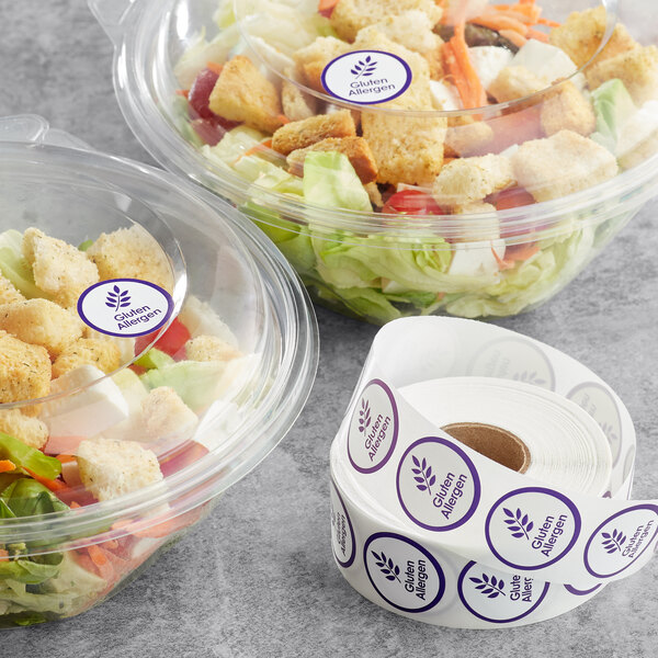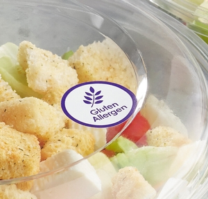 This label helps prevent cross-contamination and promotes optimal food safety for customers with allergies or specific dietary requirements. It allows you to maintain reliable, quick, and simple organization for your business. The purple color readily alerts customers to the fact that a food item contains a specific allergen.