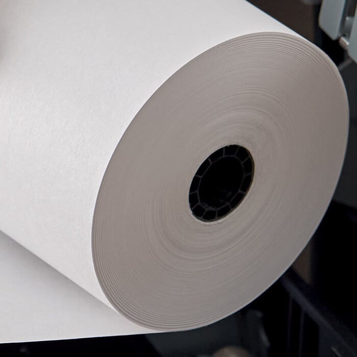 This roll printer paper is a good value. It works great with the ribbon printer and auto cutter. The paper does not smear the ink. Recommend!