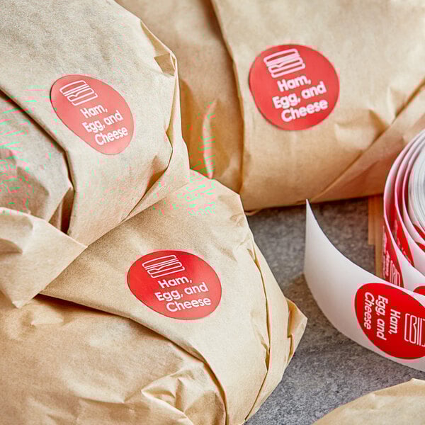 It features a "Ham, Egg, and Cheese" message and matching graphic, perfect for clearly identifying ham, egg, and cheese breakfast sandwiches and wraps.