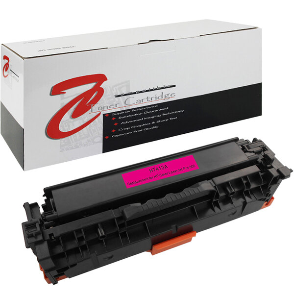 This cartridge is OEM compatible and replaces the HP CE413A cartridge, producing up to 2,600 pages of printed content without the name-brand price.