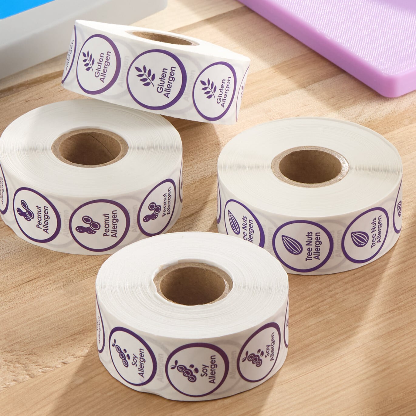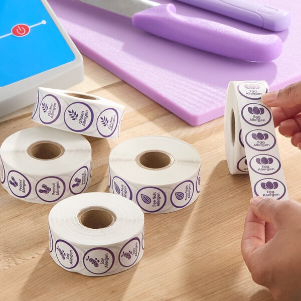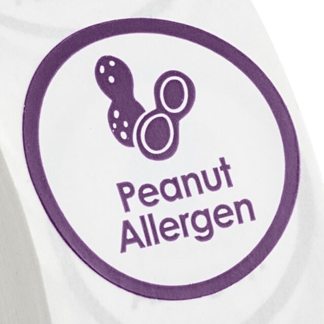 This label helps prevent cross-contamination and promotes optimal food safety for customers with allergies or specific dietary requirements. It allows you to maintain reliable, quick, and simple organization for your business. The purple color readily alerts customers to the fact that a food item contains a specific allergen.