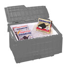 Distribute, transport, and store items with ease with this Polar Tech 21 3/4" x 15 1/8" x 12 7/8" gray reusable heavy duty plastic tote. This tote can be paired with a compatible foam liner for superior insulation, allowing you to effectively transport temperature-sensitive items. The lid is tamper proof when used with electrical ties or locks, and the textured bottom prevents movement while in transit. Plus, it comes in a variety of colors so you can color code the contents for quick identification.