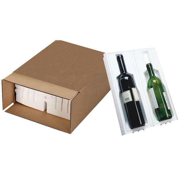 Easily package and transport wine or champagne bottles with this Polar Tech Safeway 2 bottle wine / champagne shipper box. This box can be paired with a foam insulator to prevent breakage and keep contents secure. It's designed to accommodate two 750 mL bottles, and allows room for both traditional champagne and European long neck style bottles.