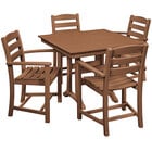 The POLYWOOD La Casa Cafe 37" x 37" Slate Grey farmhouse trestle 5-piece arm chair dining set is a sophisticated yet casual addition to any outdoor entertaining space. This set comes with one Farmhouse Trestle table and four dining height arm chairs from the La Casa Cafe collection for a complementary aesthetic, providing guests with a sturdy and comfortable spot to enjoy any appetizer, entree, dessert, or cocktail. The tabletop is made from renowned POLYWOOD lumber slats that provide the look of painted wood, but without any of the upkeep that is required of real wood. For incredible durability and equally low maintenance, this HDPE lumber won't splinter, crack, chip, peel, or rot and you never have to worry about painting, staining, or waterproofing it.