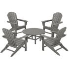 - Includes 1 round conversation table and 4 Adirondack chairs