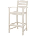 Bring a fresh, modern look to your deck, patio, or any other outdoor entertainment area with the sleek styling and casual comfort of this POLYWOOD TD202SA La Casa Cafe Sand bar height arm chair! The perfect complement to a bar height table from the La Casa Cafe series (sold separately), this chair boasts a robust design with convenient arm rests and a contoured seat to give guests a sturdy and comfortable spot to enjoy any appetizer, entree, dessert, or cocktail. Made from renowned POLYWOOD lumber, this chair provides the look of painted wood without any of the upkeep that is required of real wood. For incredible durability and equally low maintenance, this lumber won't splinter, crack, chip, peel, or rot and you never have to worry about painting, staining, or waterproofing it.