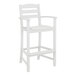 Bring a fresh, modern look to your deck, patio, or any other outdoor entertainment area with the sleek styling and casual comfort of this POLYWOOD TD202WH La Casa Cafe White bar height arm chair! The perfect complement to a bar height table from the La Casa Cafe series (sold separately), this chair boasts a robust design with convenient arm rests and a contoured seat to give guests a sturdy and comfortable spot to enjoy any appetizer, entree, dessert, or cocktail. Made from renowned POLYWOOD lumber, this chair provides the look of painted wood without any of the upkeep that is required of real wood. For incredible durability and equally low maintenance, this lumber won't splinter, crack, chip, peel, or rot and you never have to worry about painting, staining, or waterproofing it.